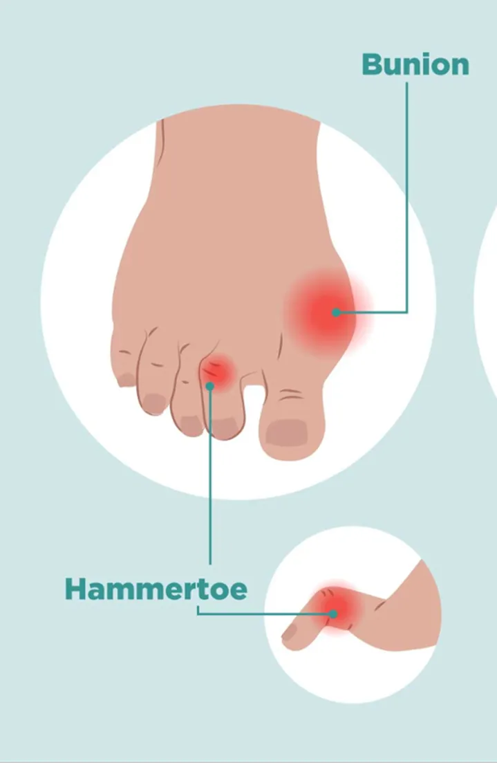 ● The lesser toes can also be painful; to address this, the painful ends of the metatarsal bones are often shortened or removed to reduce pressure under the foot and allow the toes to realign.